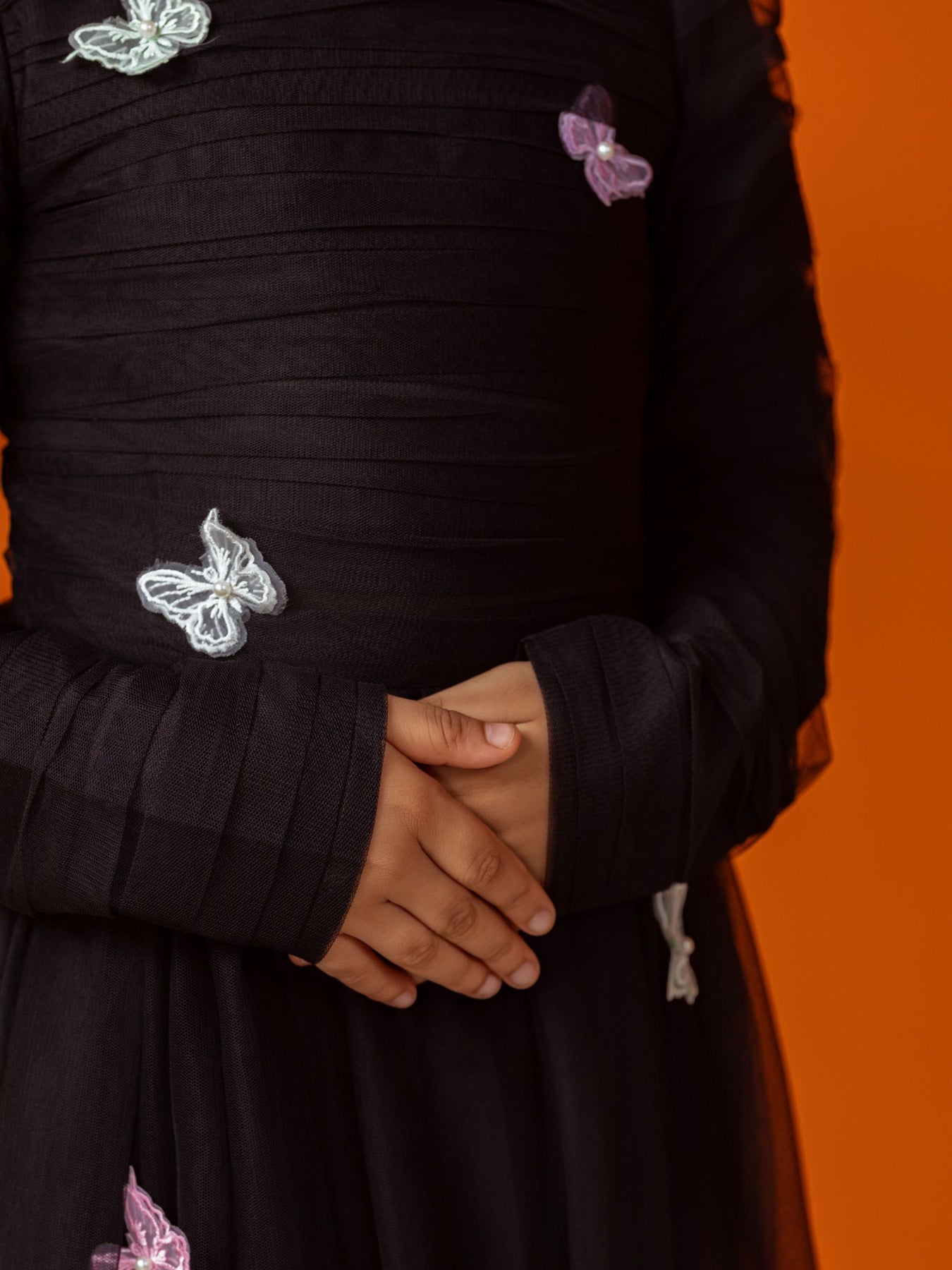 the Celine Dress is Crafted from layers of soft mint tulle and adorned with charming butterfly appliqués,